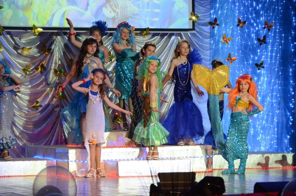 Программа конкурса шла чуть больше часа, за это время наши девочки успели сменить несколько образов. В конкурсе визиток, каждая показывала свои таланты – это были и песни, и стихи, и даже танец на пуантах! А затем сцена Городского центра досуга превратилась в морской дворец, в котором прошел удивительный бал русалочек. Здесь мы увидели самые разные костюмы морских нимф, многие из которых девочки сшили и украсили вместе с мамами.