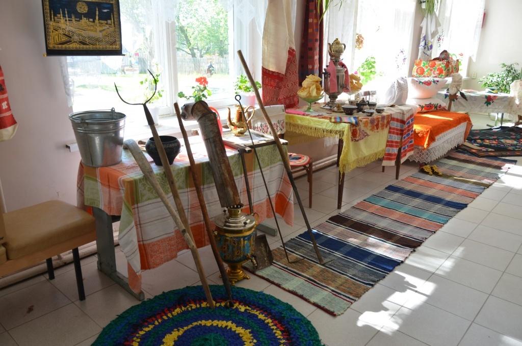 Холл дома культуры превратили в выставочное пространство, где сотрудники местной библиотеки разместили большую экспозицию. Все зрители, прежде чем попасть в зал, могли пройтись по стилизованной татарской избе – сначала попадали в прихожую, затем рассматривали кухню, спальню и молельную комнату. Все экспонаты – настоящие предметы татарского обихода. Их помогли собрать жители поселка. Так же на выставке можно было познакомиться с книгами на татарском языке и узнать историю жизни этой национальной диаспоры в Свердловской области.