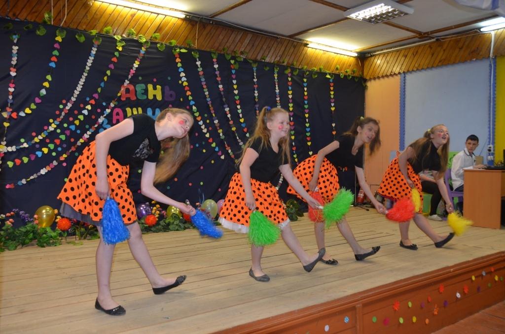 В конце творческого сезона, 2 июня мы решили заглянуть в гости к Марине Валентиновне и попали на празднование Дня защиты детей. В актовом зале собрались детишки из местного детского сада, а на сцене для них выступали Принцессой, Ученый кот и Баба Яга. Вместе с детьми они играли, пели и танцевали. Выступали на сцене и первые артисты Бородулинского дома культуры. По сути, это было одно из их первых выступлений на публике и юные зрители уже оценили их пока