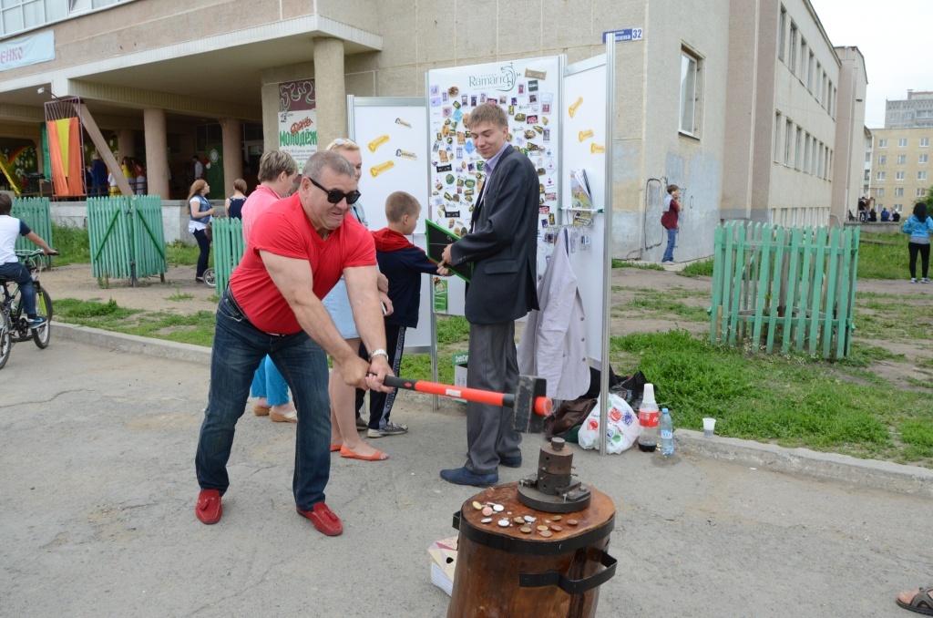 столов, где можно было не только посмотреть на детские поделки, куклы и украшения из глины, но и попробовать сладкие кексы и печенья, погладить кролика и черепашку. Любопытный аттракцион неожиданно нашелся возле палатки сысертской студии «Ramarro» – ребята на месте чеканили монеты и предлагали их купить. А особо сильные покупатели могли и сами отчеканить монетку, если конечно, хватало сил, чтобы поднять тяжеленную кувалду. В какой-то момент к этому развлечению подключился Владимир Шибаев, начальник отдела по физической культуре, спорту и молодежной политике. И тут можно было даже не покупать монеты, а просто любоваться на сильного мужчину с кувалдой в руке.