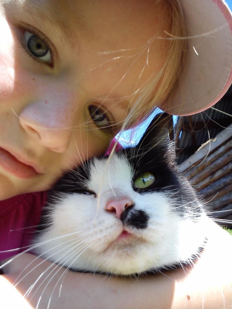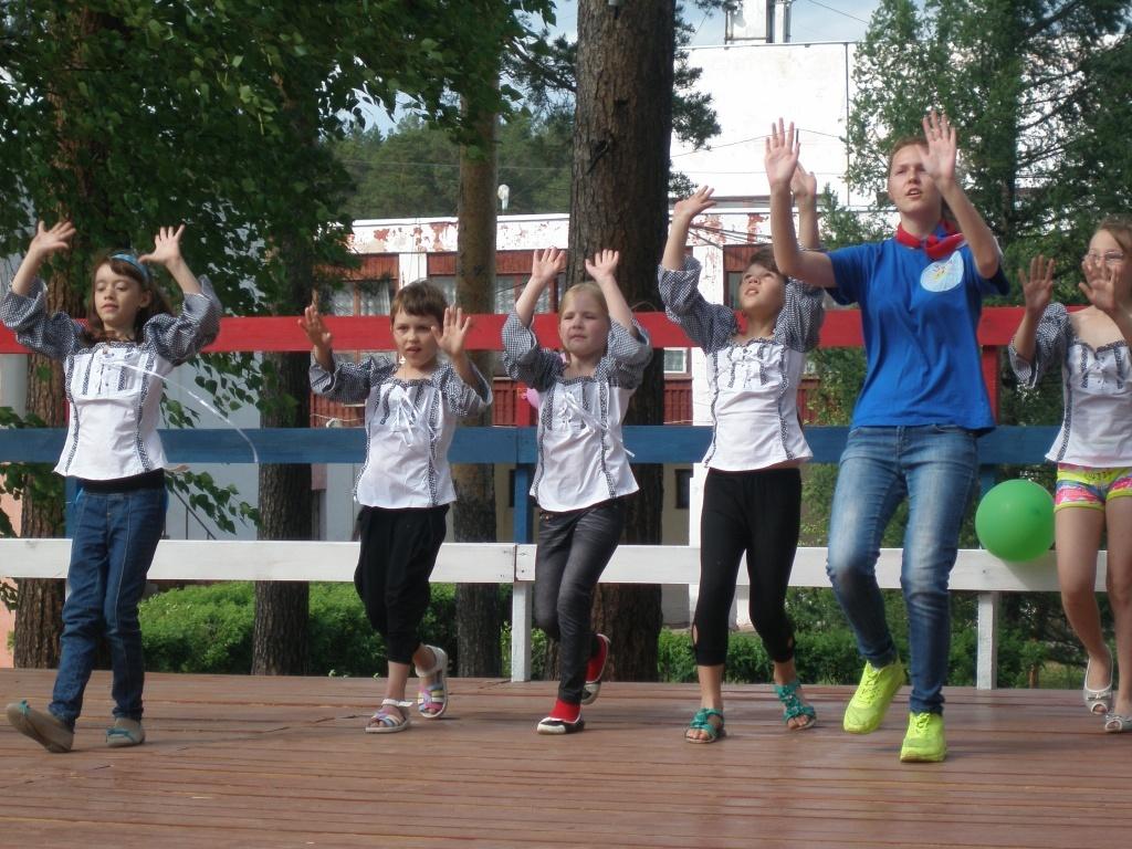 На первой фотографии Настя со своей любимой кошкой Машей (она выросла вместе с ней). На второй – Настя в лагере “Заря”, где была в первую смену, ей очень понравилось. В  загородный лагерь она выезжала первый раз, была там одна из села, не испугалась и не плакала (ну, если самую малость). Третья фотография оттуда же. Настя в середине кадра танцует на открытии смены.