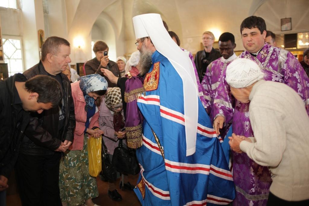 14 августа в праздник Происхождения (изнесения) Честных Древ Животворящего Креста Господня, митрополит Екатеринбургский и Верхотурский Кирилл совершил Божественную литургию в Свято-Троицком храме города Арамили.