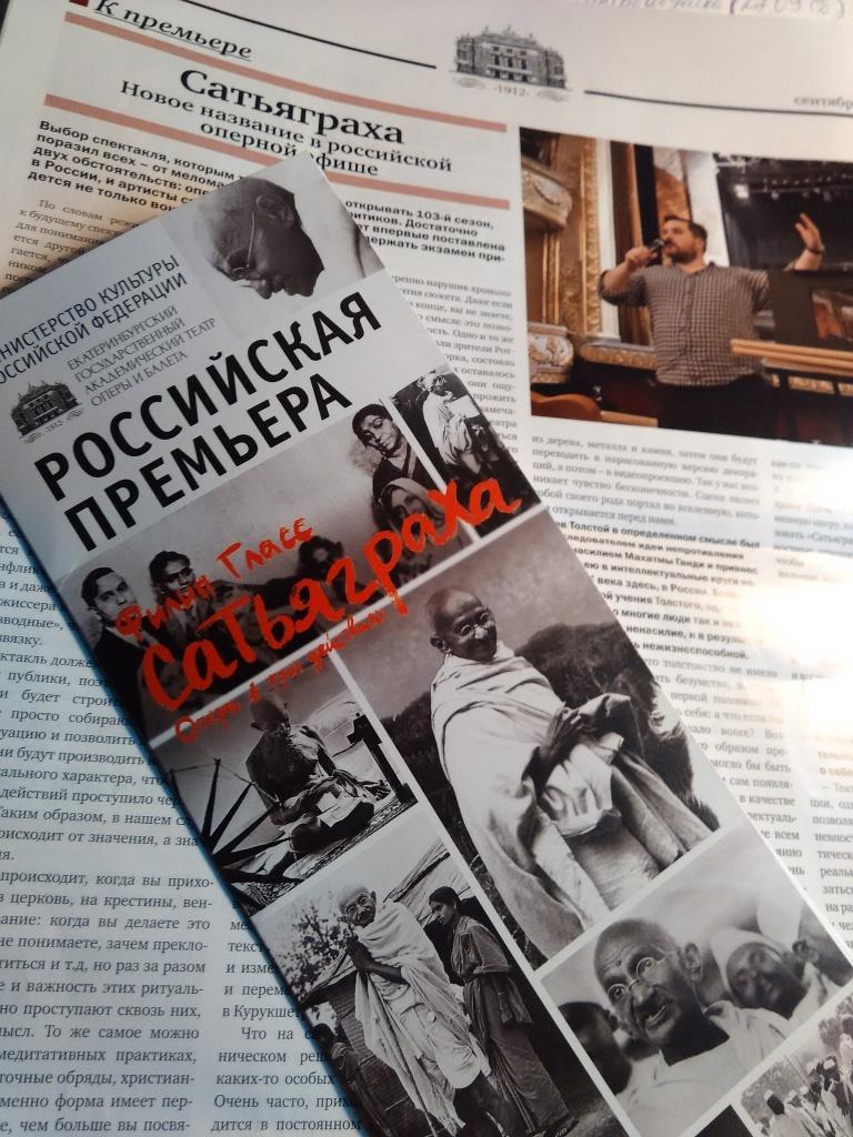 «Толстой, Тагор и Кинг – прошлое, настоящее и будущее «Сатьяграхи» – описывает свое произведение Филип Гласс. Кстати, «сатьяграха» в переводе с санскрита означает «стремление к истине».