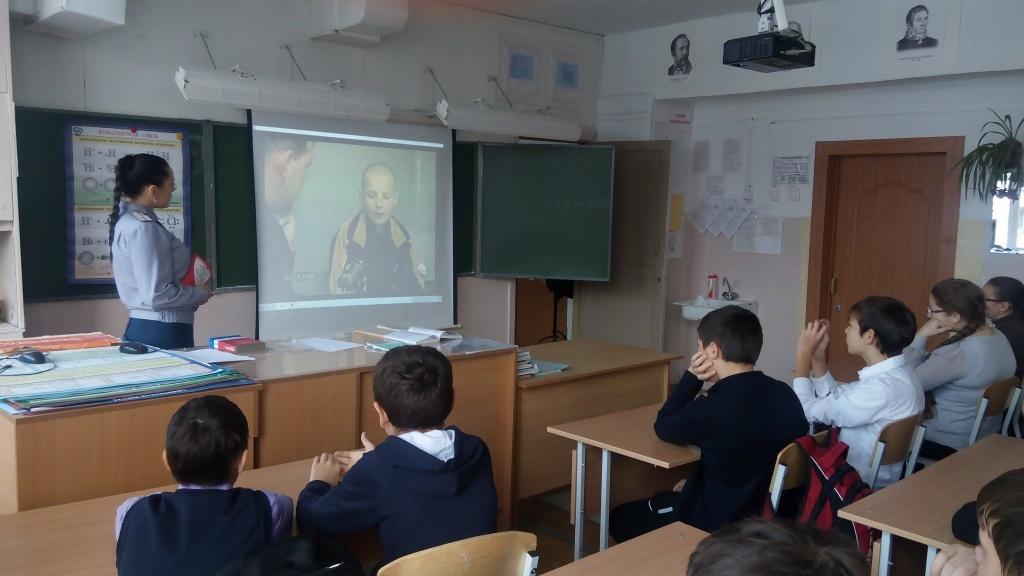 39 подростков 14-15 лет (8-9 класс) услышали об административной и уголовной ответственности несовершеннолетних, а тех видах преступлений и наказаний, которые назначают лицам в возрасте до 18 лет. По окончании беседы, направленной на углубление правовых знаний учащихся, школьникам показали видеофильм «Жизнь в колонии для несовершеннолетних».