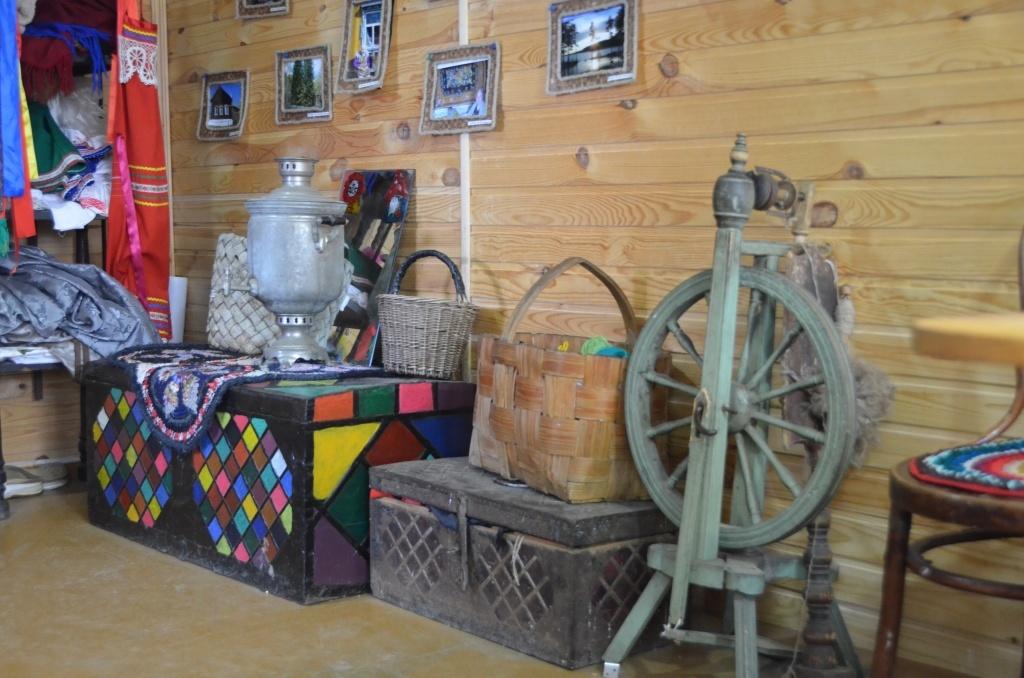 Теперь Дом народного творчества выглядит красиво – старые бревна закрыли деревянной обшивкой зеленого цвета, на окнах появились традиционные наличники. А как попадаешь внутрь, так и вовсе в другом мире оказываешься! На стенах – старинная утварь и фотографии людей, подаривших ее. Славянские обереги расположились на полках, в необыкновенном буфете, и даже на дореволюционном диване, который подарил дому творчества глава поселка. Так что здесь не только дом творчества, но и своеобразный музей народной старины. И все подобранол друг к другу, все вещи составляются в единые композиции.Конечно, все это появлялось не сразу, но даже в полупустой избушке первые годы всегда было шумно и весело.