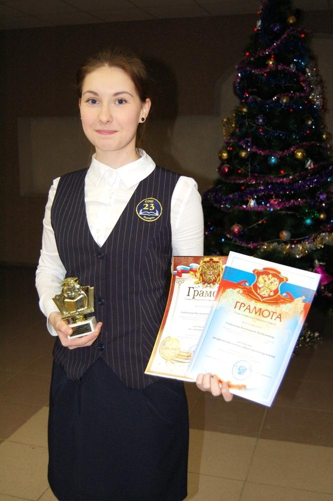 В числе участников олимпиад есть ребята, которые отличились по нескольким предметам – их чуть больше десятка. Среди них – одиннадцатиклассница из 23 школы Виктория Собакина, которая заработала сразу три первых места – литература, русский и французский язык. Вика планирует поступать на специальность, связанную с лингвистикой, поэтому сейчас делает упор на изучение именно этих предметов. Как самой титулованной «олимпиаднице» этого года, девушке предоставили слово на церемонии награждения.
