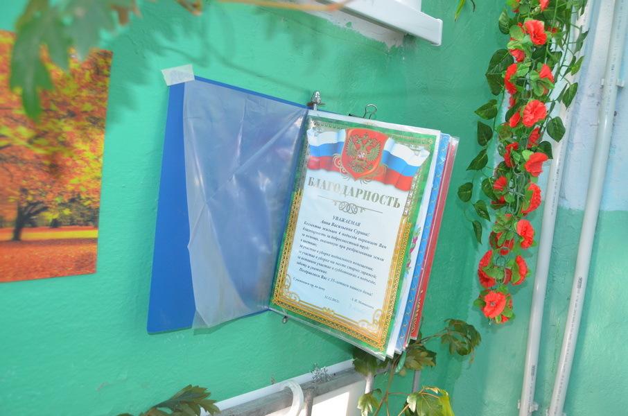 1. Горжусь своей подругой детства.Я в курсе всех новостей по благоустройству их дома и двора.Одно слово:”Молодцы!” В 2012 году они заняли первое место в районном смотре-конкурсе фонда “Моя семья”по благоустройству двора. Награду в 15000 рублей потратили на приобретение электрогазонокосилки и инвентаря для проведения общедомовых субботников.А в 2014 году в конкурсе, посвящённом подготовке к Дню города Сысерти дом занял тоже первое место. За победу им подарили пластиковую детскую песочницу.Думаю, все сысертцы хоть раз проходили по этому двору (кто в библиотеку, кто в ДЮСШ, кто в районный суд, в нотариальную контору) и любовались обилием цветов на придомовой территории, их благоустроенной детской площадкой. Жильцы дома сдружились ещё больше, видя, что плоды их общего труда имеют успех.