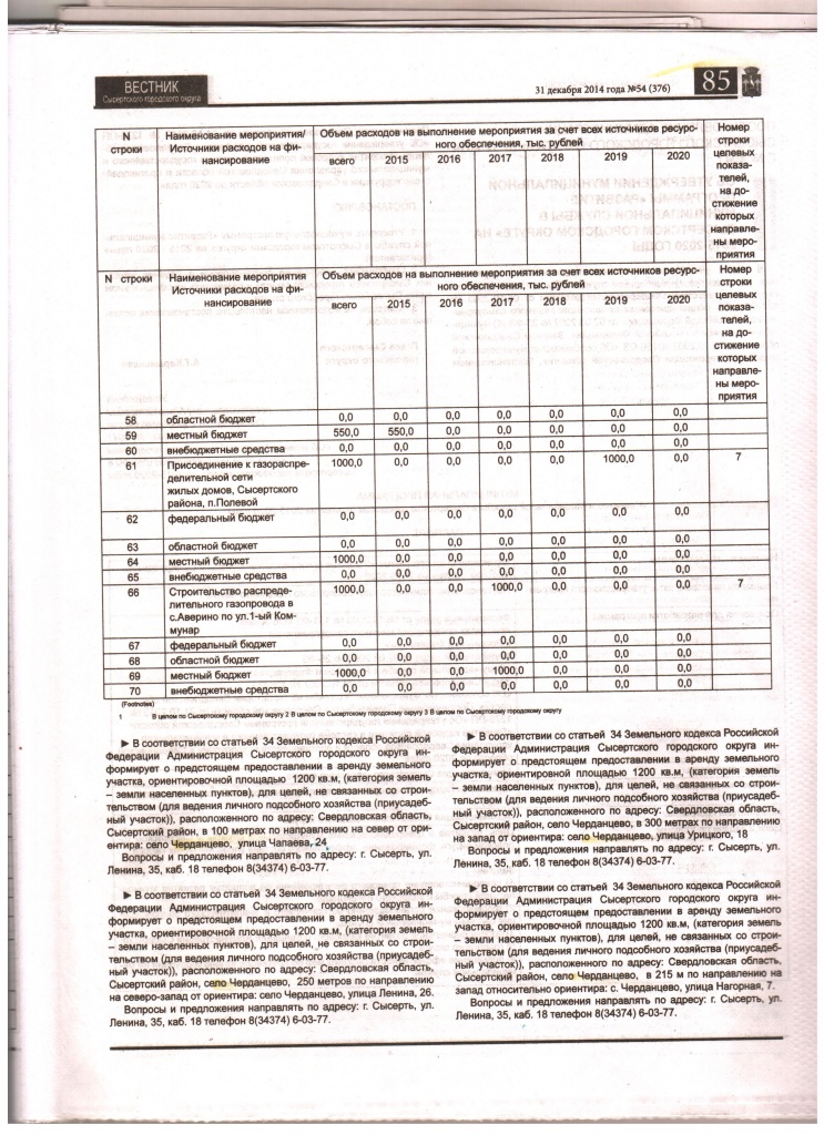 Для примера страница 85. Сверху программа развития газификации в сельской местности в таблице. Внизу объявления о земле.