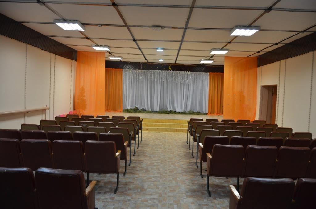 Серьезно отремонтировали актовый зал – полностью заменили пол, стены и потолок покрасили в светло-бежевый цвет, оттенив его контрастными темно-коричневыми декоративными элементами. Заменили здесь и старые сидения, вместо них – теперь ряды одинаковых стационарных стульев, которые раньше располагались в Патрушевском центре досуга. Везде поставили простенькие, но новые межкомнатные двери, сменили декорации у сцены, сделали широкую
