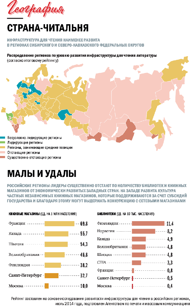 В начале 2015 года федеральное агентство по печати и массовым коммуникациям представило итог масштабного исследования состояние книжной отрасли и популярность чтения во всех регионах страны — Литературную карту России.