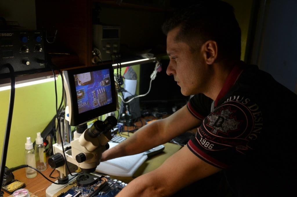 Не так давно здесь появилась отдельная «операционная» для ноутбуков. Она оснащена новейшим оборудованием, например, станцией для замены ЧПУ и цифровым микроскопом. Зачастую компьютерщикам достается поистине ювелирная работа. Так, если вы пролили на клавиатуру чай, чаще всего приходится восстанавливать сгоревшие микросхемы. Именно здесь пригодится двуглазый увеличитель, а еще усидчивость, терпение и точная рука.