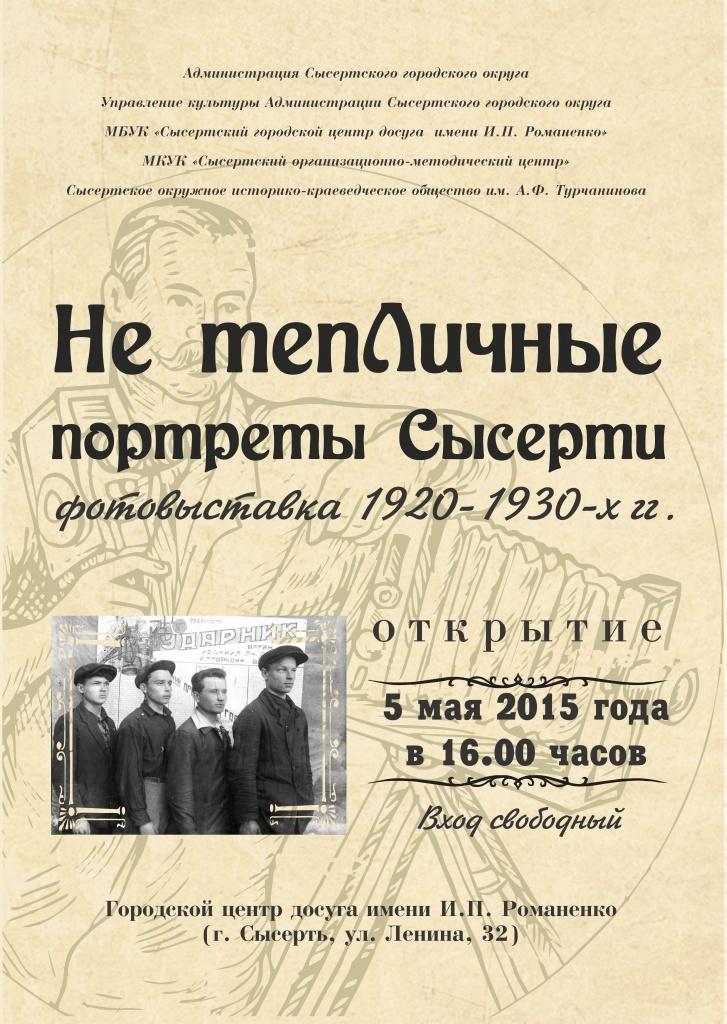 Выставка под названием «Не тепличные портреты Сысерти» откроется в ГЦД им. И. П. Романенко 5 мая в 16.00.