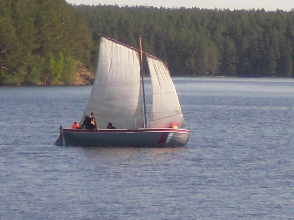 Еще одно местное чудо я обнаружил на Сысертском пруду. Некий житель улицы 8 марта, скорее всего, из тех, что побогаче, спустил на воду и апробировал свое мини-судно. На паруснике катались люди в спасательных жилетах. Издалека я насчитал семь пассажиров, а кто капитан – так и не понял.