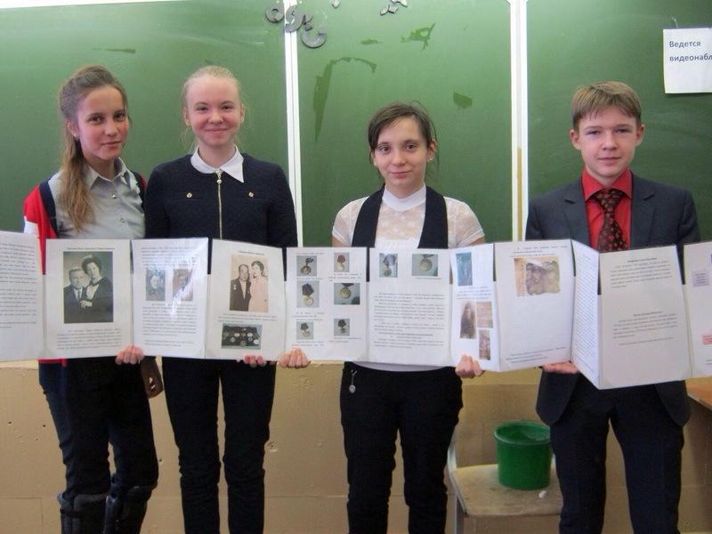 Ученики школы №6 Полина Гладышева, Ксения Краснова, Ярослав Шурыгин и Юмзюле Юсеин защищали проект «Достойные уважения и памяти».