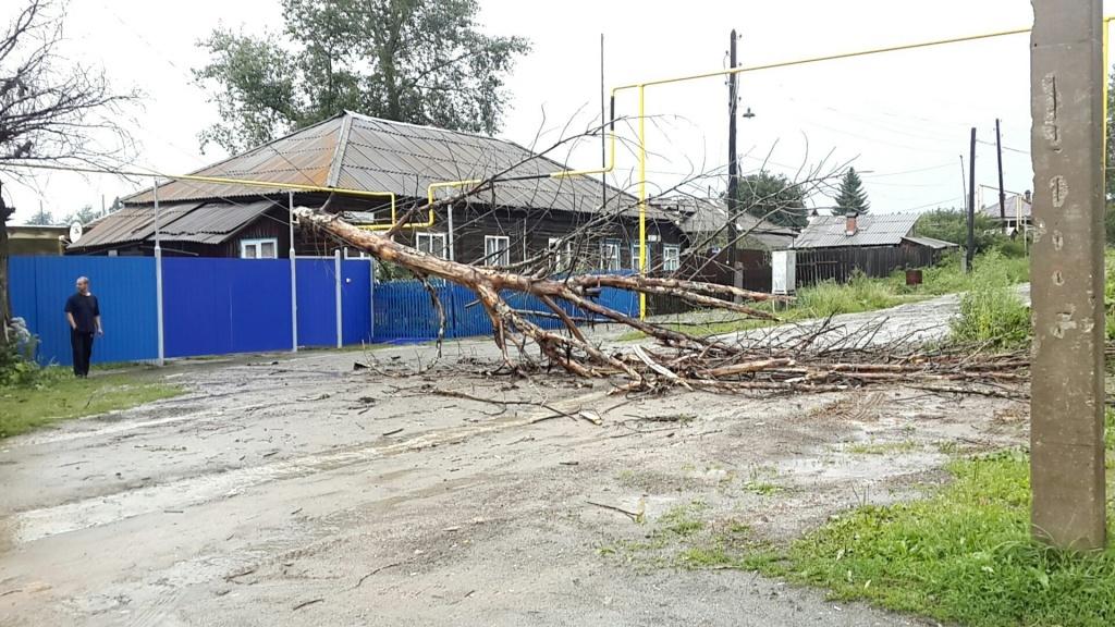 Из-за сильного порывистого ветра во время грозы 12 июля возле нашего дома рухнула верхушка тополя. Благо, упало дерево не на дом, а на дорогу, но зацепило и оборвало провода.