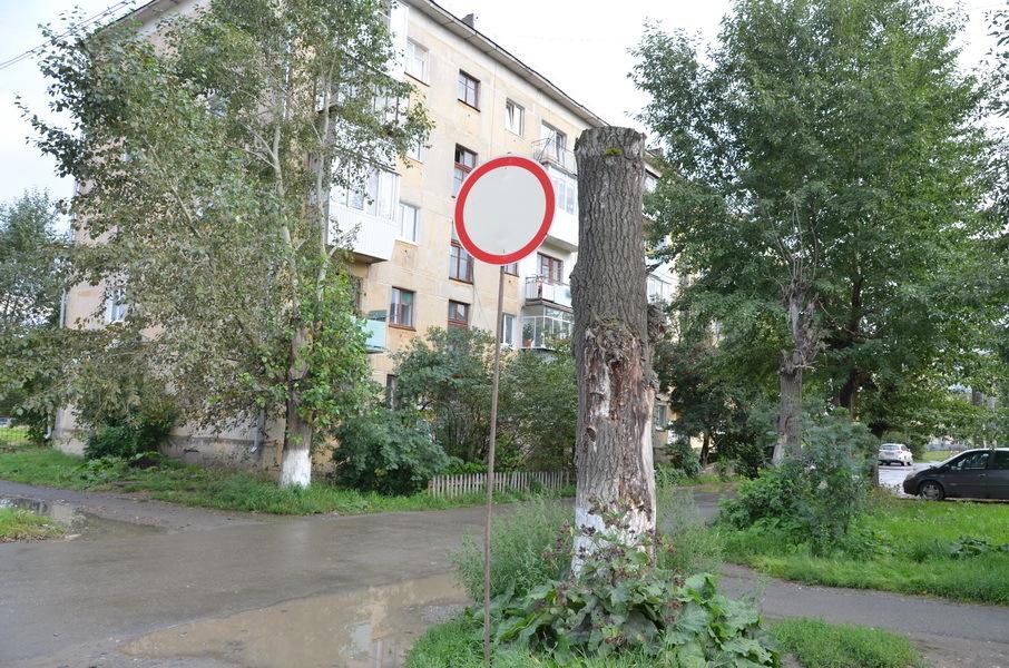 Чтобы не ездили чужие, бросили блоки со стороны Р. Люксембург. Жильцы соседнего дома 47 решили самостоятельно установить дорожные знаки, запрещающие проезд во двор. Со стороны Р. Люксембург знак сначала прибили на старый тополь. Потом подобрали шест. Чтобы остановить въезд машин с Орджоникидзе, знак «Движение запрещено» прикрепили прямо к газовой трубе возле контейнерной площадки для сбора ТБО.