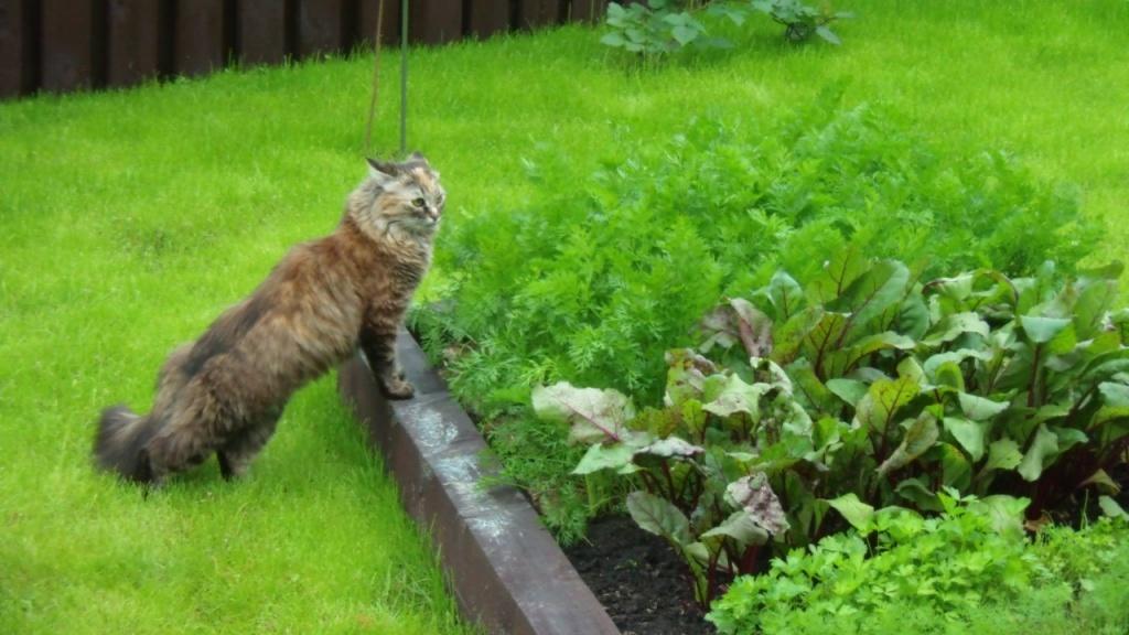 Грядки у друзей сделаны из бруса, который обработан пропиткой для того, чтобы служил дольше. Форма ромбов придает им особую красоту. Сетка на дуге защищает посадки от птиц и других вредителей. Свободные грядки, чтобы земля не пустовала и восстанавливалась, засеяны сидератами.