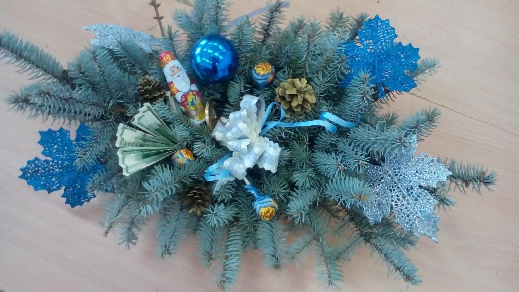 В конкурсе новогодних букетов в стиле «икебана» можно было увидеть море идей и смесь техник. Букеты состояли из шишек, пуговиц, веток, конфет и даже лампочек, были собраны в корзины, венки, стеклянные колбы или плетеные сани. Победу присудили детсаду N56 п. Двуреченск за их коллективную работу и Марине Матюхиной из школы N7 с. Патруши.