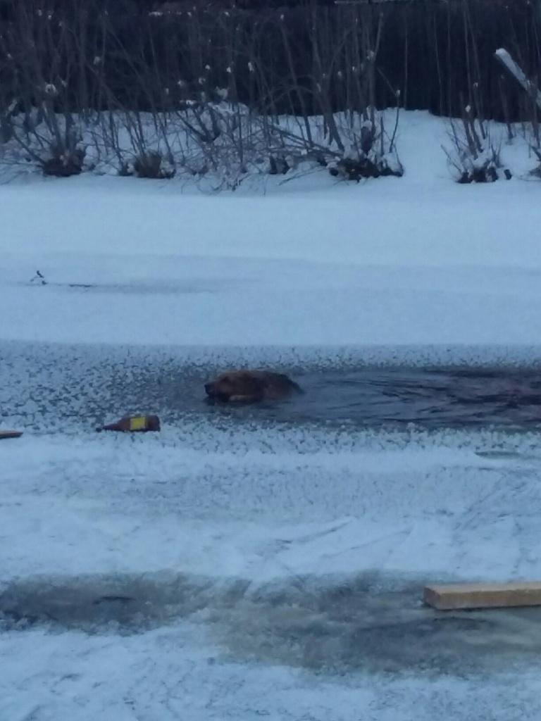 – Сначала мы с братом попытались подобраться к псу, но побоялись, что сами окажемся под водой, так как из-за течения в этом участке реки лед редко бывает толстым. Вдруг с противоположного берега прибежал незнакомый парень (позже выяснили, что его зовут Александр). Он не местный, работает в кузнице на территории мебельной фабрики. Саша по тонкому льду рванул к собаке, но мы его вернули обратно и обвязали веревкой. Он практически сразу провалился и поплыл.