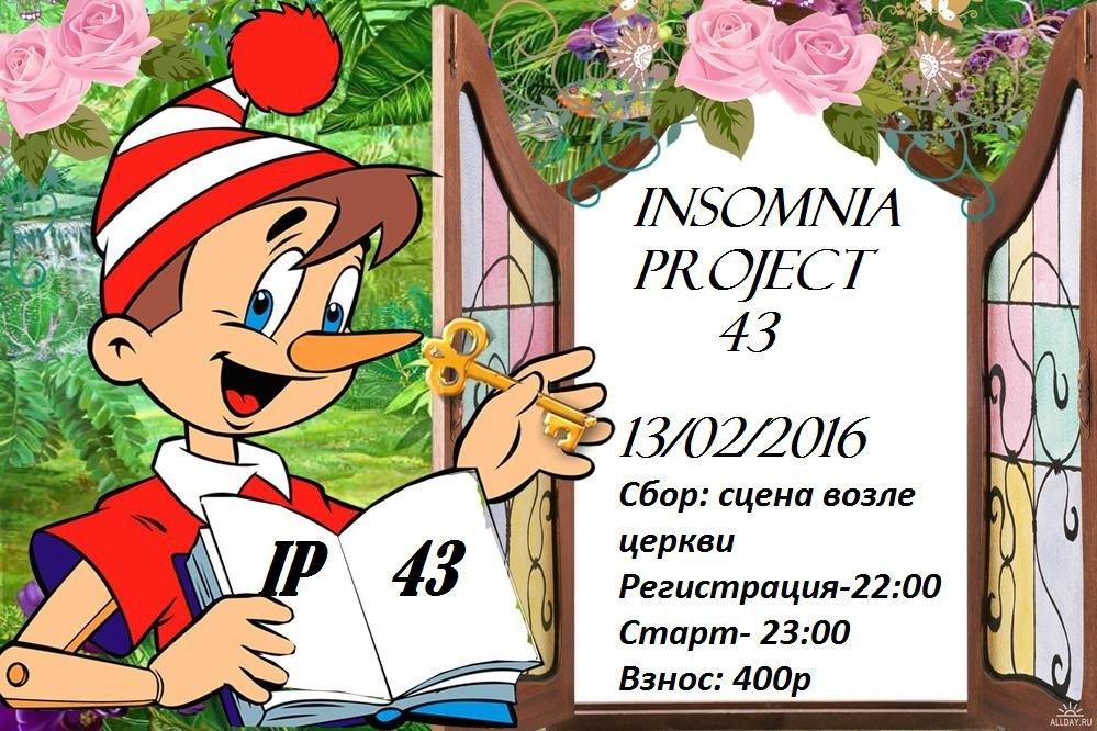 Зарегистрироваться участники могут заранее в группе на сайте «Вконтакте»: vk.com/insomnia43. Там же можно отслеживать возможные изменения. Участие в игре «Insomnia project-43» платное. Стартовый взнос с экипажа – 400 рублей.