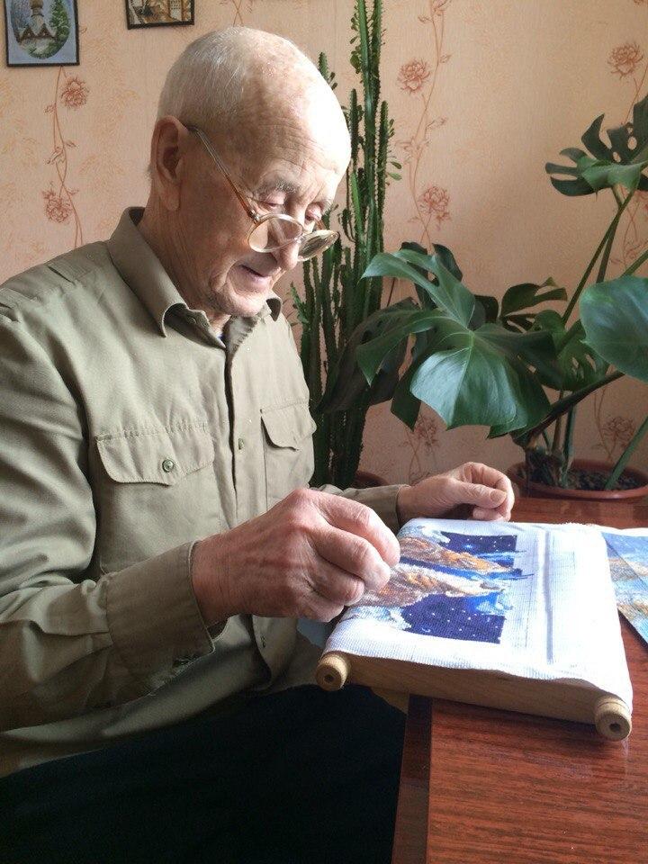 В прошлом – маркшейдер, архитектор, строитель, а ныне – пенсионер, 81-летний Алексей Петрович Окатьев нашел для себя необычное занятие. Четыре года назад, по совету дочки, он увлекся вышивкой крестиком. В коллекции Алексея Петровича более 30 картин. Самым первым стал пейзаж: вид на астраханский монастырь. Над ним архитектор работал два месяца. В копилке вышивальщика есть и несколько икон, вышитых не только нитками, но и бисером. Сейчас мастер трудится над «Песней любви»: в ночи, на пригорке, два влюбленных волка воют на луну. Алексей Петрович смеется: