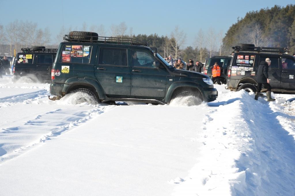 Выстроившись в ряд, внедорожники готовились к старту, прогревая двигатель и утаптывая снег под колесами. Наконец, был подан сигнал, и машины ринулись вперед, пытаясь пробурить метровую толщу слежавшегося снега. Каждая категория стартовала отдельно. Кто-то застревал сразу, стоило колесам оказаться в сугробе. Кому-то удалось добраться до середины, а затем по системе «один шаг вперед, два назад» пробираться к финишу. А кому-то удача улыбнулась, и они преодолели испытание «с разбега» и практически без остановки.