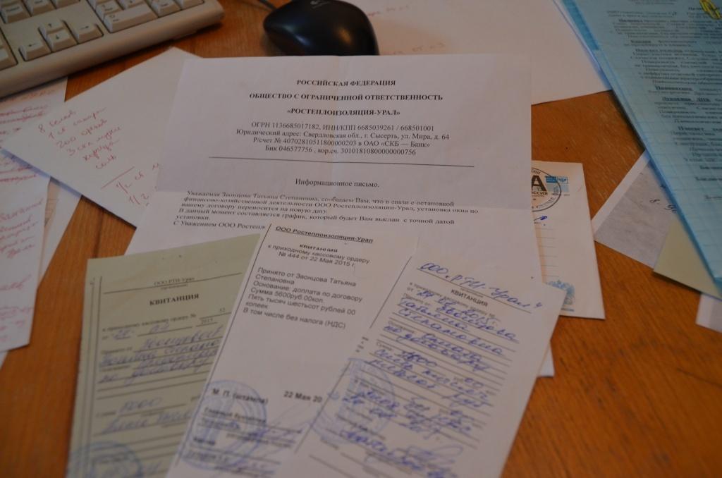 В апреле 2015 года Татьяна Степановна условилась с фирмой «Ростеплоизоляция – Урал» (больше известной в Сысерти по адресу своего местонахождения – «Ленина, 38») о том, что добросовестные работники заменят ее старенькие рамы. Тем более что годом раньше они установили ей балконные окна и двери. С нареканиями, конечно, зато по-честному. 24 апреля женщина оплатила 5 тысяч рублей Алексею Евгеньевичу Татаурову. В квитанции прописано основание платежа: «предоплата по договору». Но самого договора Татьяна Степановна в глаза не видела. Продавцы услуг сказали: вот окна поставим, тогда и договор будет. Дали ей бумажку с расчетами, суммой платежа (28 803 руб.) и сказали: можете платить в рассрочку, раз в месяц. Пенсионерка выплатила еще 5600 в мае, 7500 в августе – и попала в больницу.