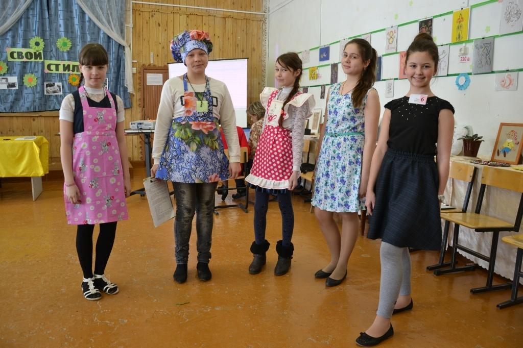 На этапе «Домашнее задание» участницы олимпиады устроили для жюри дефиле, представив одежду собственного пошива. Юбки, платьица, фартуки, футболки, деловые и пижамные костюмы… Чуть-чуть стесняясь, модели кружились под музыку, стараясь показать свое творение во всей красе. Затем по очереди девочки рассказали о процессе шитья, о трудностях и о том, кто помогал при покрое. Члены жюри не скупились на вопросы начинающим дизайнерам одежды: чем больше самостоятельности проявлено в работе, тем выше балл. Оценивалось не только знание технологии и дизайн, но и сложность изделия.
