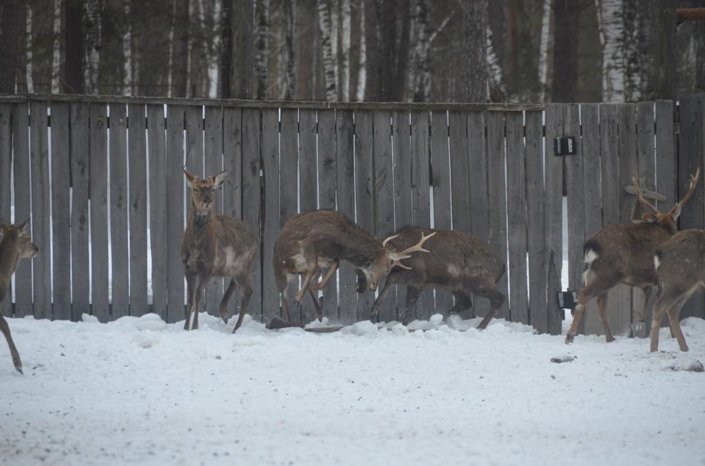 Совсем по-другому живут здесь самки. В марте эти самостоятельные дамы сбиваются в стада по несколько десятков особей и отправляются «в лес» – гулять по огромной территории фермы. В августе или сентябре они возвращаются к своим кормушкам, в основной загон, приводят с собой телят и резвятся с самцами. Уже пять лет подряд оленеводческое хозяйство имеет возможность реализовывать пятнистых оленей по всей Свердловской области, увеличивая популяцию этих животных на Урале. Например, олени, живущие в «Белой лошади», приехали оттуда.