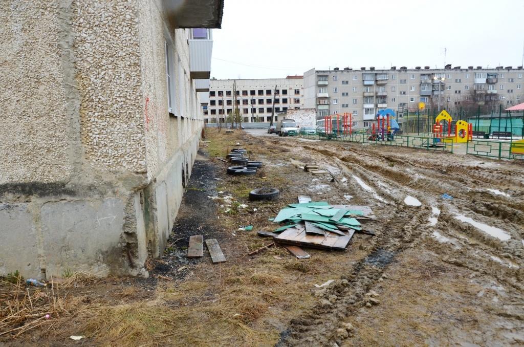 Дворник дома N28 микрорайоне новый Ольга Геннадьевна Федосенко рассказала, что ещё на днях она метлой вымела подчистую весь мелкий мусор за домом. Но недолго она радовалась красоте: жильцы последнего подъезда приподнесли ей сюрприз. Решив устроить приборку на балконе, они почему-то, забыли что мусор нужно выносить на помойку, а не просто скидывать вниз под окна. С балкона они выбросили фанеру и доски и даже не подумали подобрать.