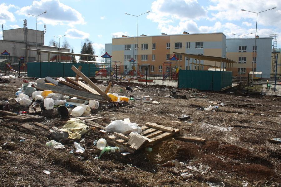 Октябрьский – свалка строительных и бытовых отходов за территорией садика