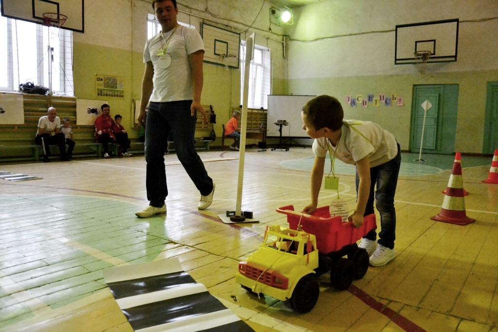В спортзале 6-й школы родители вместе с детьми выполняли различные задания. Стартовал конкурс с визиток, где семейные команды представились и поделились своим мнением о том, почему важно на дороге быть осторожными и «светиться» под взором автомобильных фар. Далее участники дружно отвечали на вопросы викторины по правилам движения, собирали паззлы, отгадывали дорожные знаки, с закрытыми глазами складывали все необходимое в аптечку. В конкурсе «Автогородок» им предстояло пройти полосу препятствий, управляя игрушечным грузовиком.