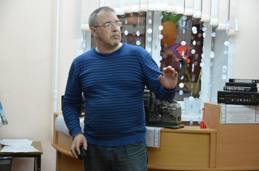 Сысертская районная библиотека решила провести эту ночь под флагом кино. Фильмы о «Туманной земле» – вот что стало главной темой встречи хранителей книжного богатства и читателей. Методист центра внешкольной работы Александр Андреевич Савичев рассказал о появлении кинематографа в родном городе. Оказывается, этой истории нынче исполняется уже 101 год. В 1915 году, благодаря управляющему сысертской горнодобывающей компании, англичанину Райту, в народном театре (который располагался на улице Быкова) появилась установка для показа немого кино. Первым киномехаником стал отец известного сысертского краеведа Виктора Михайловича Колегова – Михаил Иванович. А уже с 1937 по 1991 год в здании храма Симеона богоприимца и Анны пророчицы действовал кинотеатр «Авангард». Александр предложил жителям поискать в личных архивах фотографии того времени и поделиться с ним для работы над исследованием об истории кино.