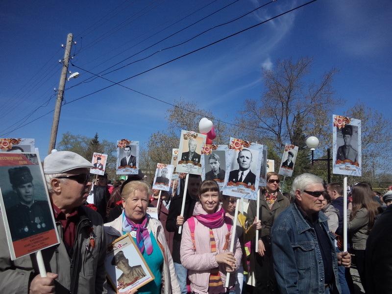 Победным строем 9 Мая прошагали по заводской аллее участники «Бессмертного полка». В его рядах бок о бок стояли взрослые и дети. Маленькие участники крепко сжимали в ручках древко с портретами погибших солдат.