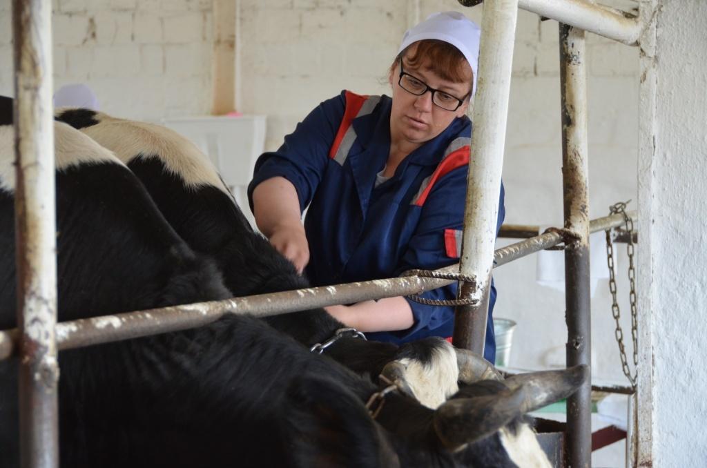 Под впечатлением от увиденного спешу на следующий этап. Елизавета Александровна в рабочем халате выбирает будущую «жертву» из трех привязанных к стойлу коров. Остальные буренки в корпусе мычат – то ли завидуют подругам, то ли радуются за себя. Когда корова выбрана, ей «крутят хвост» – привязывают веревкой, чтобы не мешался. Внешне и на ощупь оператор определяет, готово ли животное к осеменению и приступает к своей работе. Обработать корову, помыть руки, надеть чистый халат, набрать семя – главное, соблюдать последовательность действий. Единственная из всех участников, Елизавета Колясникова подробно описывала каждое свое действие. За это, вероятно, и получила от жюри высшую оценку. Оператор с 18-летним стажем комментирует сегодняшний конкурс:
