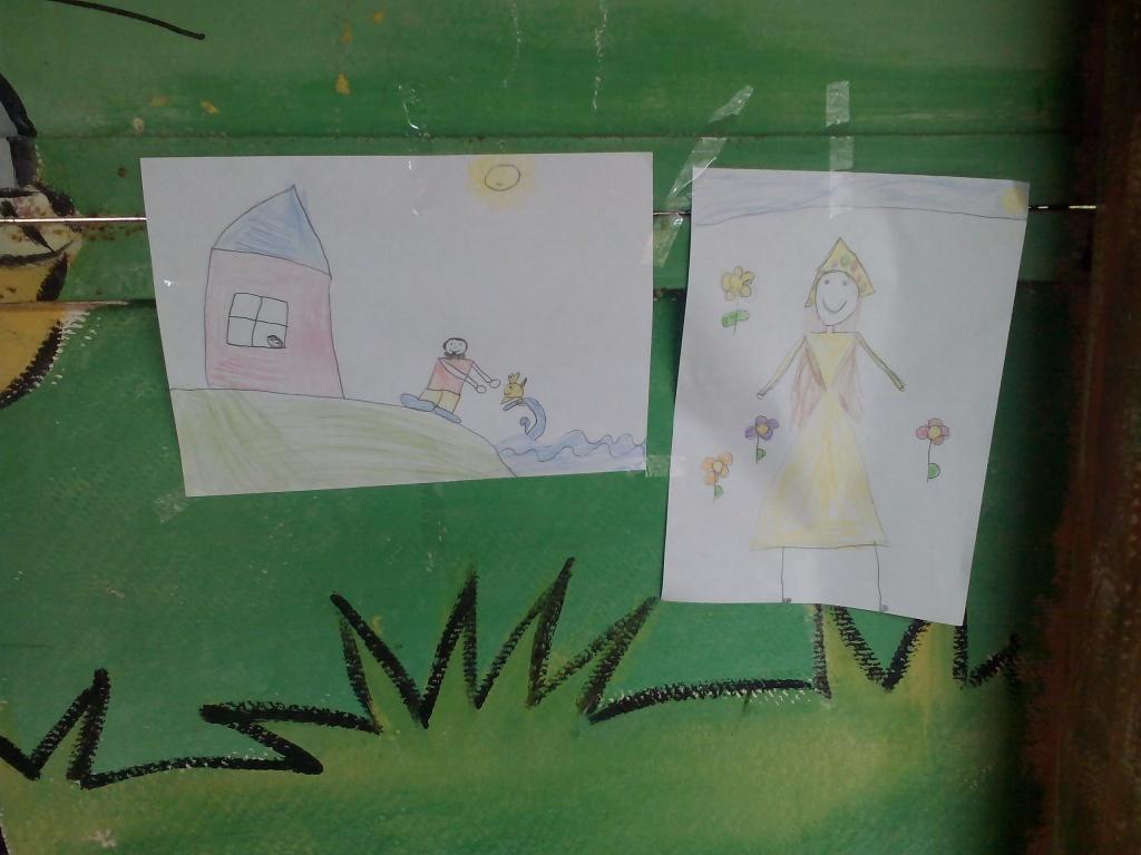 Праздник продолжился и на территории детского сада. В рамках проекта «Галерея на прищепках», дети устроили уличную выставку. Рисунки по произведениям А. С. Пушкина украшали участки детского сада.