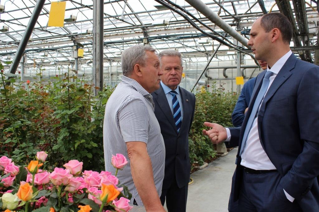 – Основной вопрос – земельный – мы решили в этом году: помогли Владимиру Алексеевичу Смалю получить еще два гектара земли для развития тепличного хозяйства. Он сейчас на двух гектарах выращивает 650 тысяч роз, начал строить еще гектар теплиц. На двух дополнительно полученных гектарах пока посадил капусту, чтобы земля не простаивала. Будем помогать финансовыми ресурсами, чтобы он имел возможность развивать хозяйство дальше. Мы рассчитываем, что еще в три раза он сможет увеличить производство – до полутора миллионов роз в год, – сказал председатель правительства региона Денис Паслер.