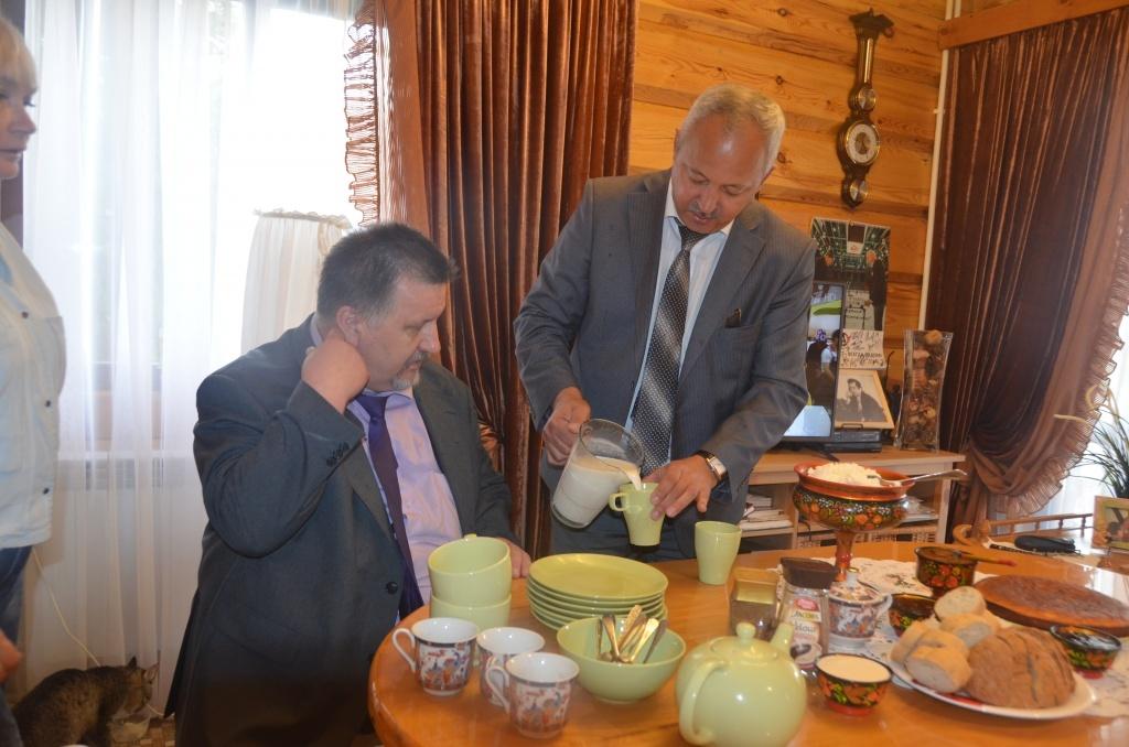 28 июля крестьянско-фермерское хозяйство Алексея Юрьевича Бондарева посетил начальник департамента развития личных подсобных хозяйств и занятости сельского населения министерства сельского хозяйства Российской Федерации Виктор Иванович Калинин и первый заместитель министра сельского хозяйства и продовольствия Свердловской области Сергей Владимирович Шарапов.