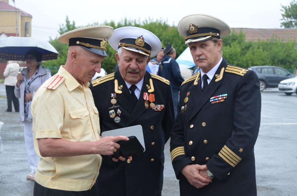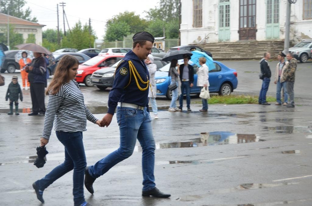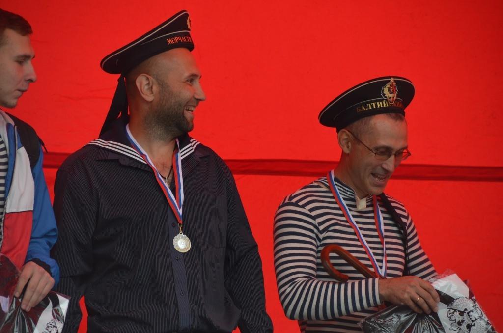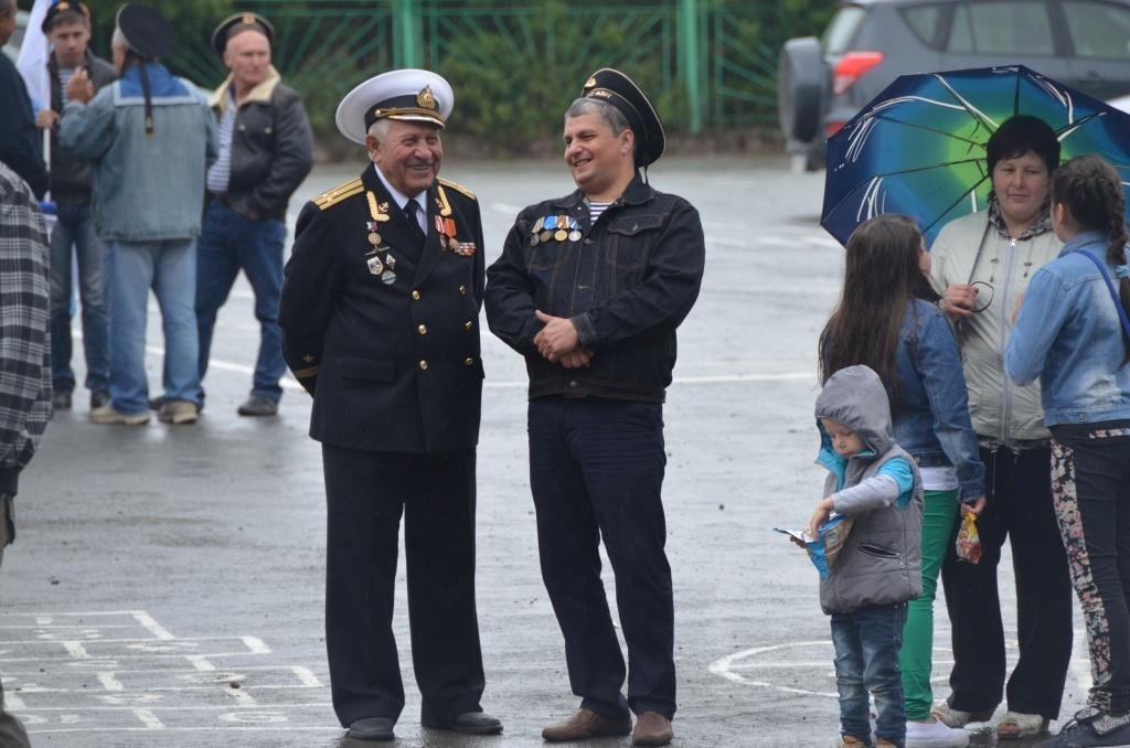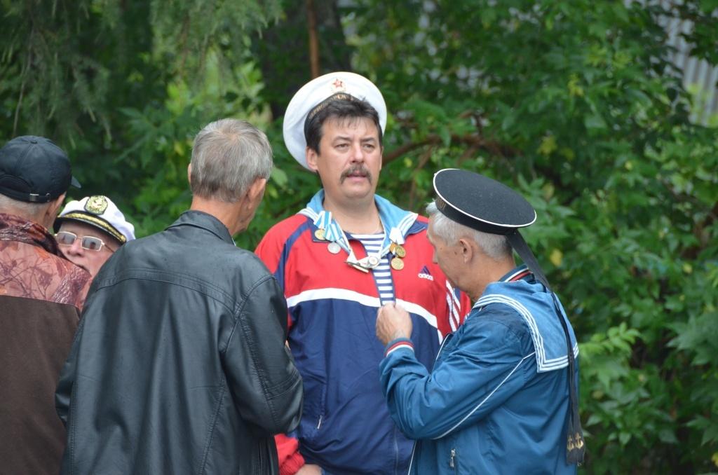 Так говорят моряки: ветераны и совсем молодые парни, поздравляя друг друга с праздником. Прицерковная площадь превратилась в палубу корабля. Мужчины в тельняшках – совсем новых и повидавших много выходов в море, развевающиеся ленты на бескозырках, дружный хохот, и почти у каждого на груди – медали, ордена, почетные знаки. День военно-морского флота нынче был скромным: размахнуться с гуляниями помешала погода. Но традиции нарушать не стали: не обошлось без торжественного возложения цветов и венков к мемориалу и любимых соревнований по арм-рестлингу. В них поучаствовали шестеро самых мужественных и сильных. Абсолютным победителем стал Виктор Черноскутов – он служил на Черноморском флоте. Второе место занял Сергей Антипин, третье досталось Алексею Быкову. Он, кстати, на сегодня – самый молодой моряк в Сысерти. Алексей отслужил в морской пехоте на Балтийском флоте. По словам Владимира Борисовича Шибаева, Леше повезло, что его призвали на срочную службу в море – сейчас там все чаще служат контрактники. Всего в Сысертском районе около трехсот “морских волков”. У них есть своя общественная организация – клуб “Экипаж”, которым руководит капитан второго ранга Сергей Егорович Сабуров.