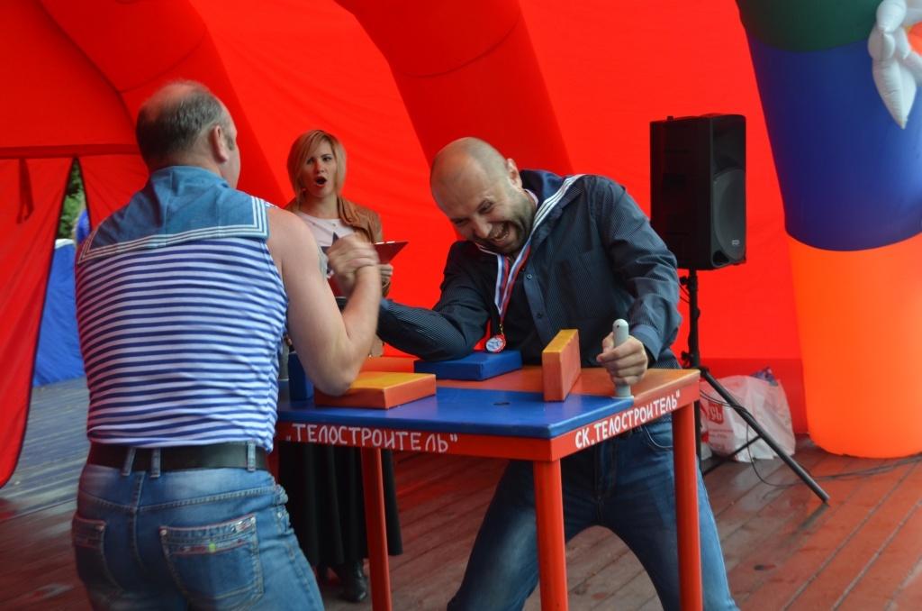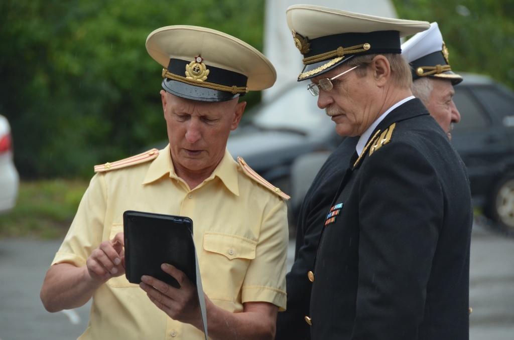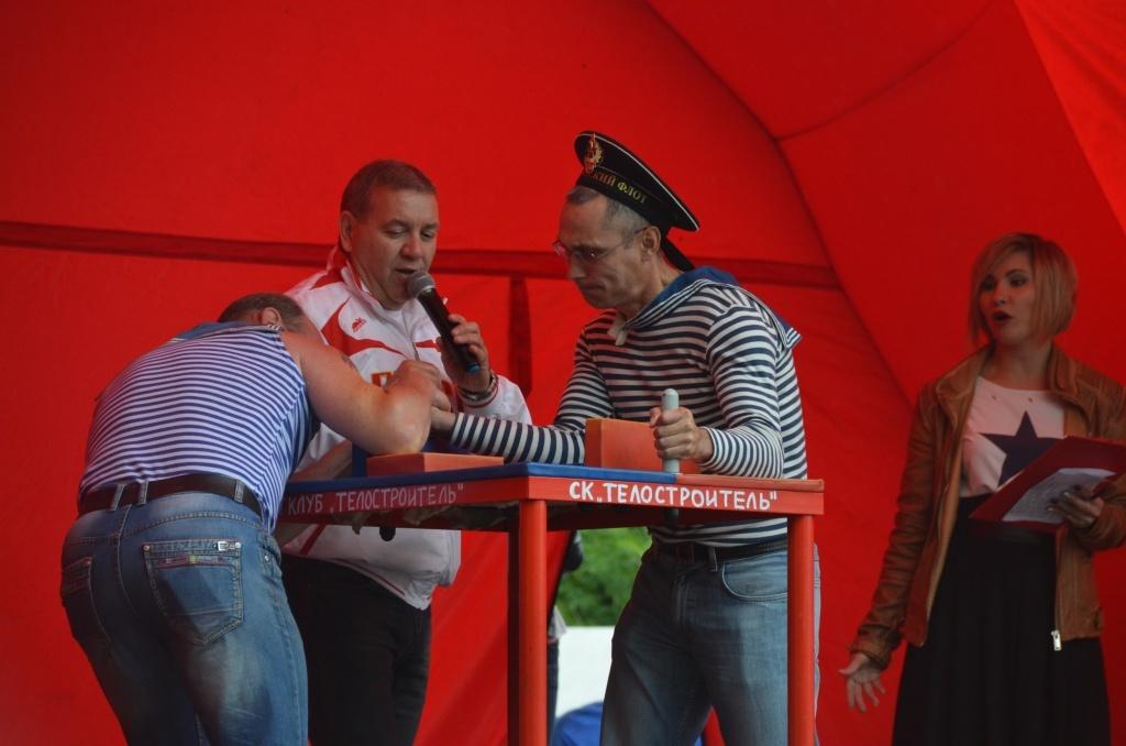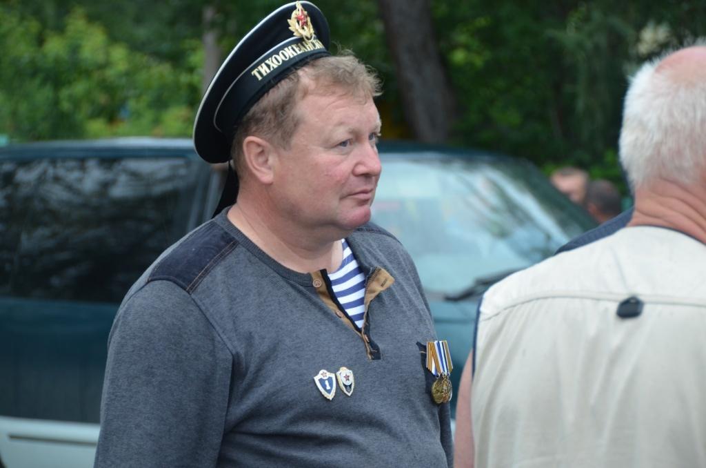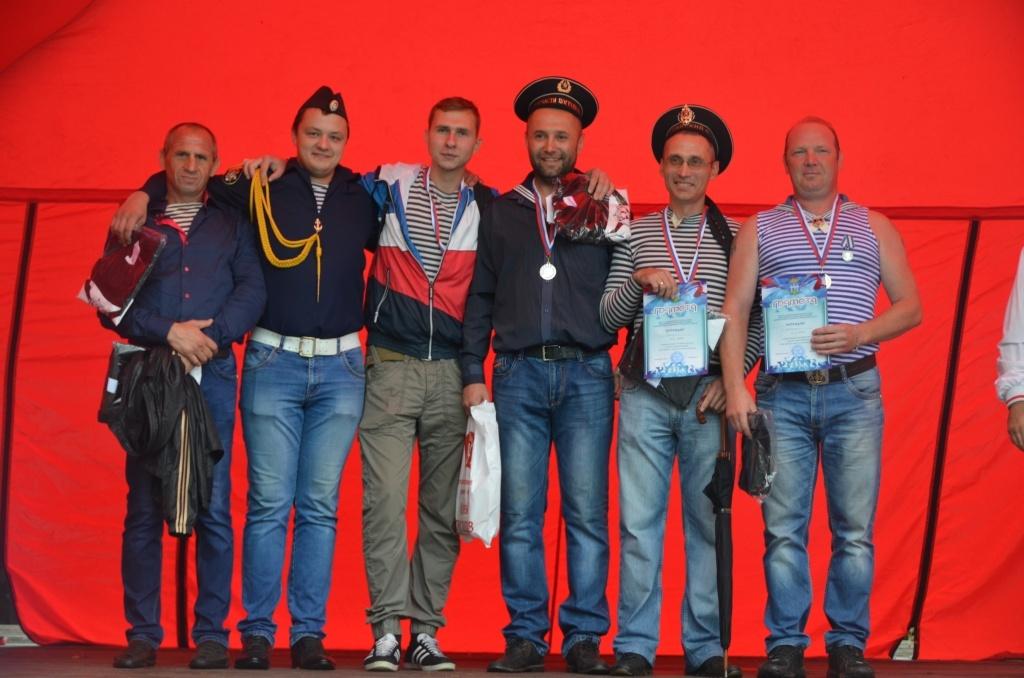 Так говорят моряки: ветераны и совсем молодые парни, поздравляя друг друга с праздником. Прицерковная площадь превратилась в палубу корабля. Мужчины в тельняшках – совсем новых и повидавших много выходов в море, развевающиеся ленты на бескозырках, дружный хохот, и почти у каждого на груди – медали, ордена, почетные знаки. День военно-морского флота нынче был скромным: размахнуться с гуляниями помешала погода. Но традиции нарушать не стали: не обошлось без торжественного возложения цветов и венков к мемориалу и любимых соревнований по арм-рестлингу. В них поучаствовали шестеро самых мужественных и сильных. Абсолютным победителем стал Виктор Черноскутов – он служил на Черноморском флоте. Второе место занял Сергей Антипин, третье досталось Алексею Быкову. Он, кстати, на сегодня – самый молодой моряк в Сысерти. Алексей отслужил в морской пехоте на Балтийском флоте. По словам Владимира Борисовича Шибаева, Леше повезло, что его призвали на срочную службу в море – сейчас там все чаще служат контрактники. Всего в Сысертском районе около трехсот “морских волков”. У них есть своя общественная организация – клуб “Экипаж”, которым руководит капитан второго ранга Сергей Егорович Сабуров.