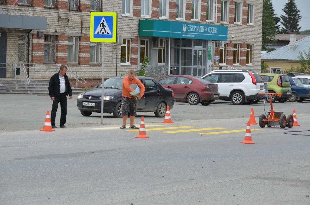 Новый пешеходный переход от здания военкомата к администрации в Сысерти появился в начале лета. Сегодня рабочие нарисовали там “зебру”. Это станет дополнительным способом привлечения внимания водителей: многие так и не привыкли к тому, что на перекрестке появился новый переход и предпочитают сбавлять скорость только в крайнем случае.