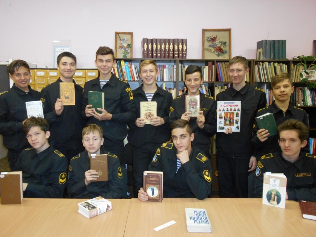 В библиотеке для детей и юношества прошел литературно-музыкальный вечер, посвященный великому русскому поэту – Александру Сергеевичу Пушкину и его учебе в Царскосельском лицее. В гости пришли наши постоянные читатели – кадеты 9 «В» экипажа и воспитатель Ирина Викторовна Семенова. Ведущая торжественно открыла встречу, прочитав стихотворение А. С. Пушкина «Друзья мои, прекрасен наш союз!».