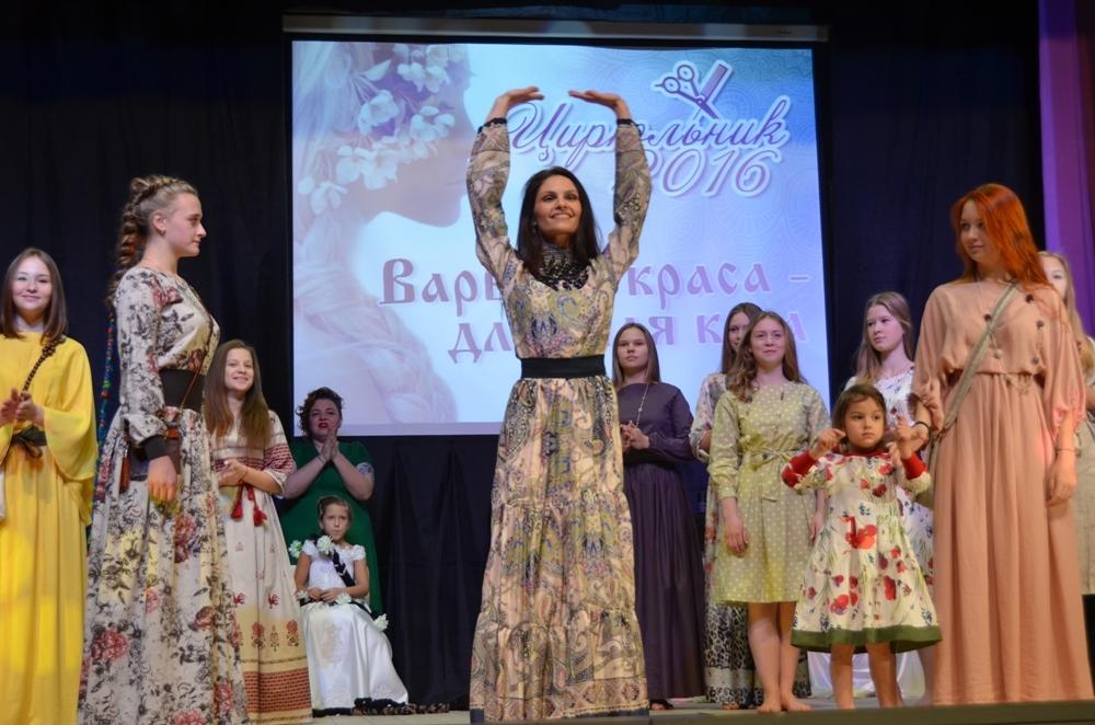 В конкурсе «Варвара краса, длинная коса» женщины соревновались в плетении. А пока они доставали из своих чемоданчиков припасенные атрибуты и вплетали их в косоньки своих моделей, дабы увеличить длину прически, на сцене появилась специальная гостья мероприятия. Мастерица на все руки и многодетная мама Милослава Краснопольская всего за десять минут на глазах у изумленного зрителя сшила прекрасное платье в пол из льняной ткани. Без выкройки, без снятия мерок, без лишних усилий. А когда наряд был готов, и в зале утихли бурные овации в адрес рукодельницы, стартовало дефиле авторских платьев, сшитых Милославой по той же технологии.