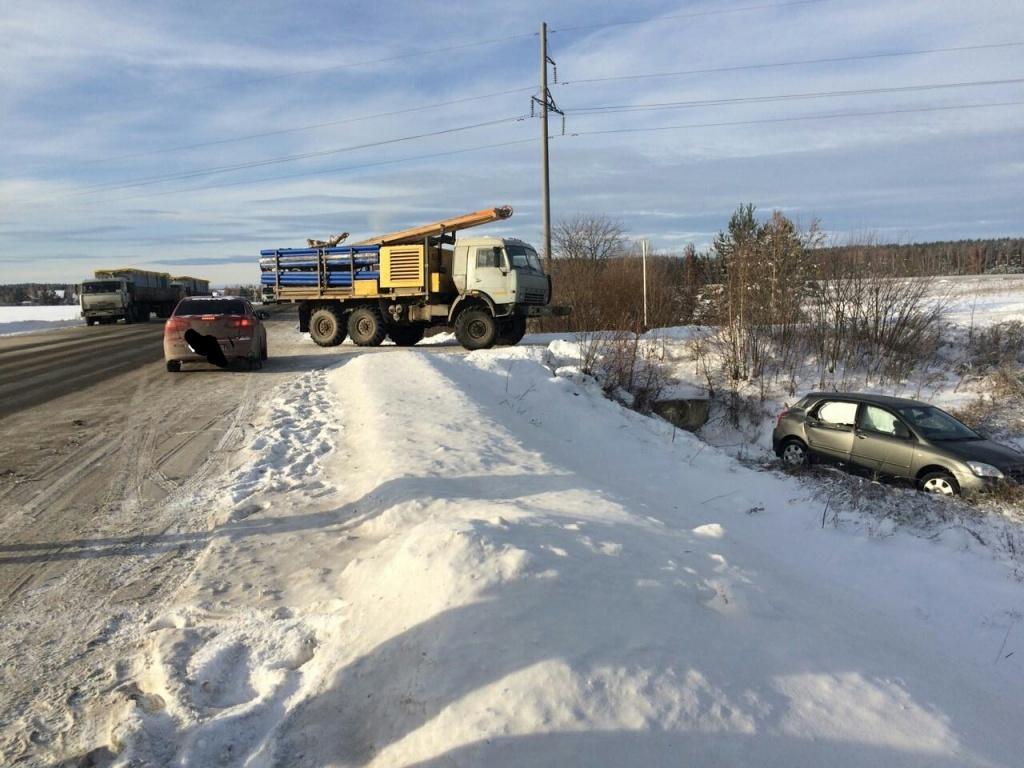 Так, 21 ноября в 10.25 авария случилась на автодороге Ольховка-Двуреченск. 62-летний водитель автомобиля «Тойота Королла», двигаясь со стороны поселка Ольховка, вышел на обгон КамАЗа. В это время большегруз приступил к повороту налево на перекрестке. В результате маневра «Тойота» въехала в боковую часть КамАЗа, а затем съехала в кювет. Водитель легкового автомобиля госпитализирован в Сысертскую ЦРБ.