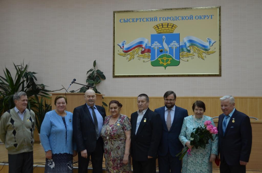 26 декабря в администрации Сысертского городского округа перед началом аппаратного совещания состоялось торжественное награждение трех супружеских пар знаками отличия Свердловской области «Совет да Любовь». Начальник управления социальной политики по Сысертскому району С. В. Кожевников и глава округа А. Г. Карамышев поздравили семьи, имеющие стаж совместной жизни более 50 лет, отметили, что такие союзы прекрасный пример молодому поколению. Заслуженные знаки отличия и подарки получили Анатолий Акимович и Виктория Никоновна Лыжины, Виталий Савельевич и Мария Александровна Сухановы, Виталий Ефимович и Людмила Ивановна Бабинцевы.