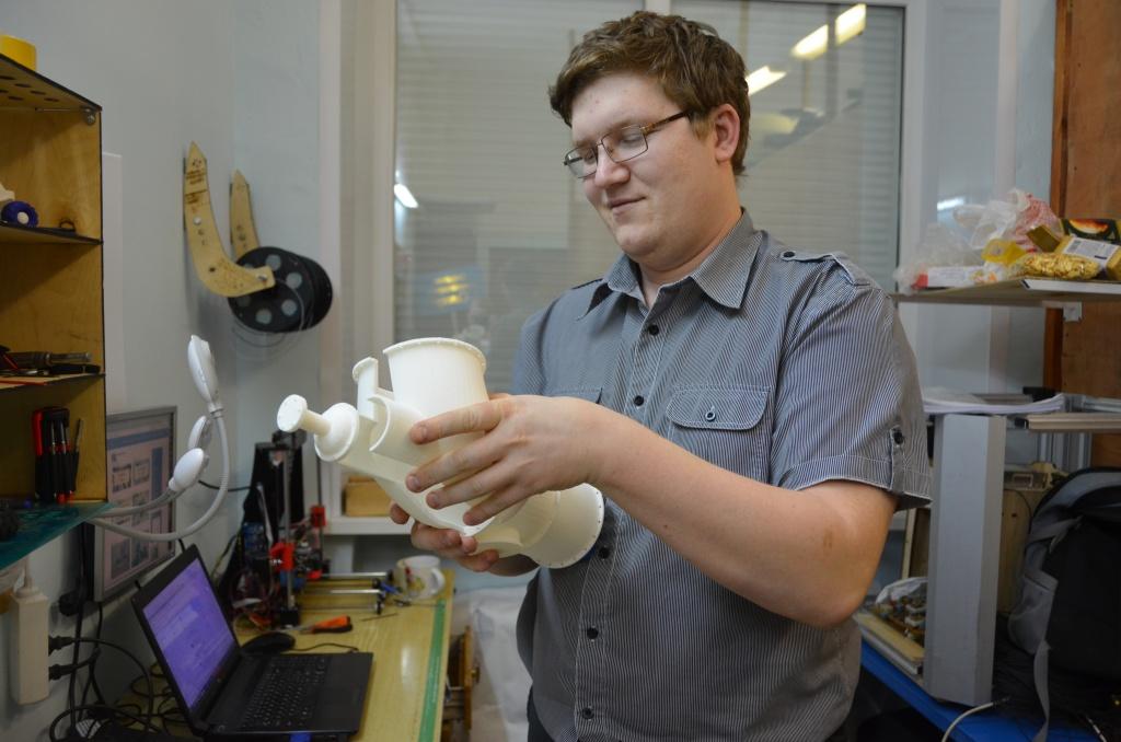 А еще в числе текущих разработок – самодельные 3D-принтер и экструдер. Пока готовы только корпуса, «начинка» на подходе. По мнению преподавателя, в скором будущем мы сможем, не выходя из дома, печатать на принтере большинство мелких бытовых предметов. Скажем, нужна кружка. Берем моток пластиковых ниток, задаем принтеру форму и спустя пару часов – вуаля – новенькая кружка готова. Не понравилось, или вышел брак – отправляем в экструдер, где деталь дробится и вновь вытягивается в нитку, с которой все начиналось. Кстати, пластик, с которым работают дети, экологически безопасен. Такая кружка не выносит высоких температур, но зато полностью разлагается в почве. 3D-принтеры активно внедряются в производство. На нем можно изготавливать детали любых форм, в том числе цельнометаллические, не используя при этом большие, дорогие и ограниченные в функционале фрезерные станки.