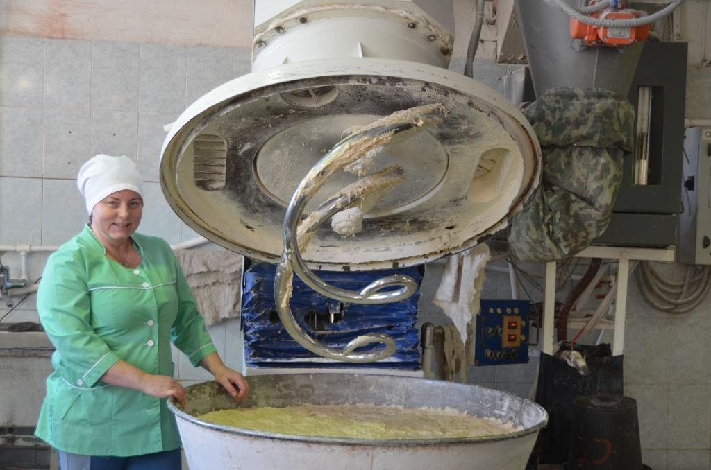 Бригадир О. И. Анбрусенко на замесе хлеба «Крестьянский».