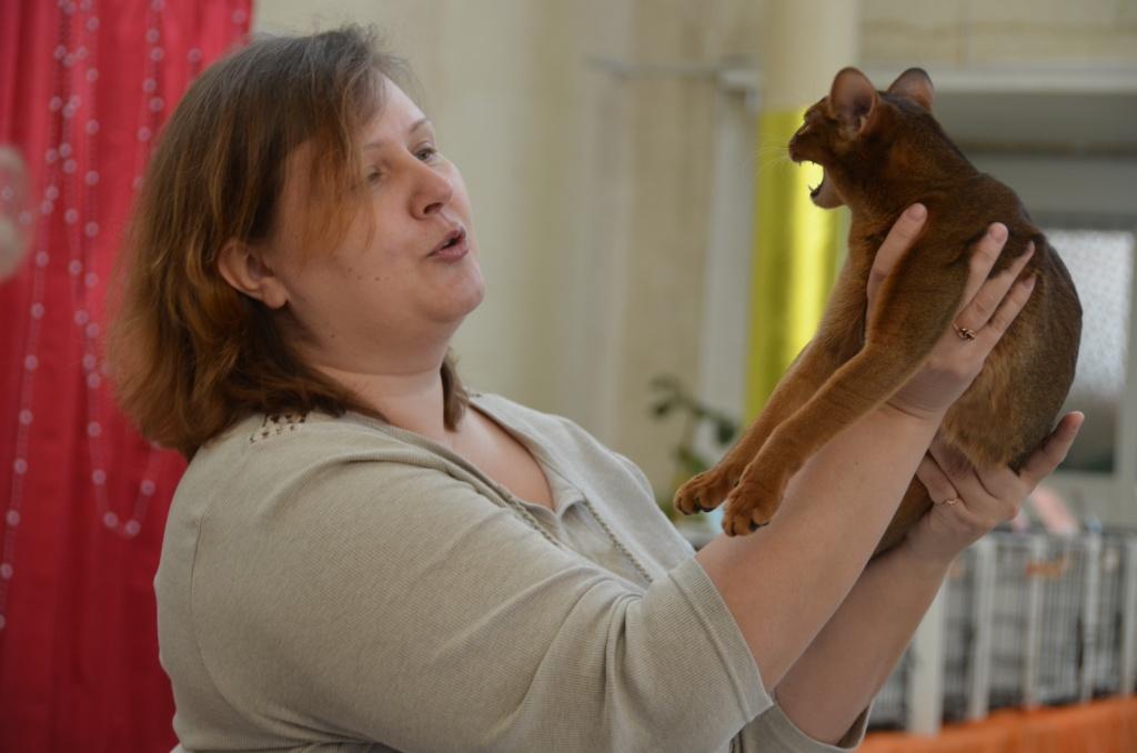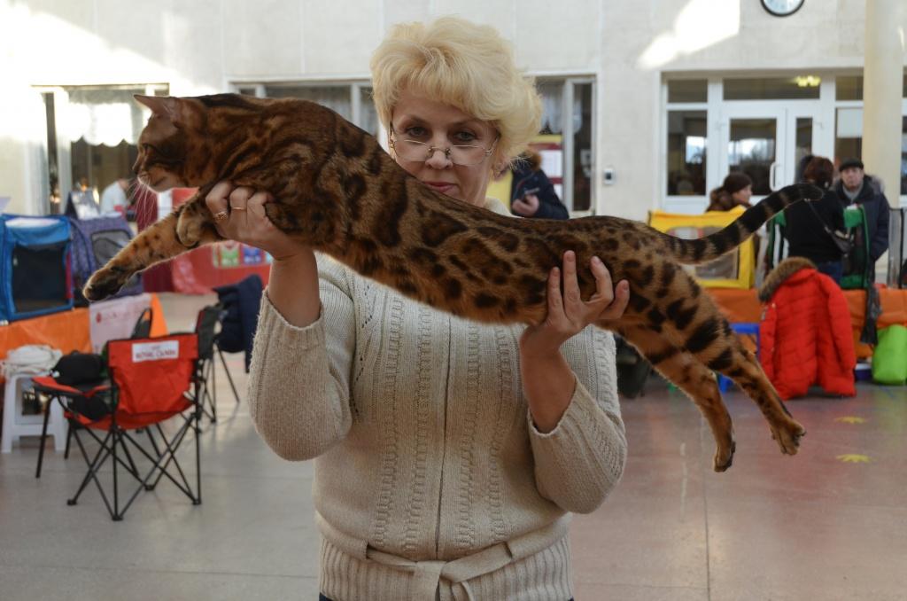 А вот маленький леопард, племенной бенгал Амур сегодня недоволен. Многократного чемпиона, обладателя титула за лучший окрас, привезли на выставку, чтобы работать. Но полуторагодовалому коту хочется любви. Своим громогласным «Мау!» он будоражит всех кошек в округе. Лариса Дмитриева, хозяйка сысертского питомника бенгальских кошек «Лорана Бенг», занимается разведением этой породы уже четвертый год подряд.