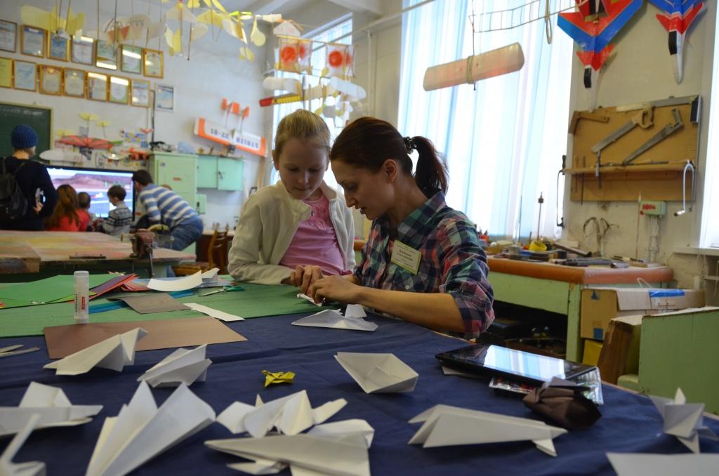 В классе авиамоделирования прошло сразу два интересных мастер-класса. А. А. Коробицина показала ребятам различные способы создания самолетов и танков в технике оригами. Самые активные смогли создать самолет и тут же его испытать в воздушном состязании. Здесь же с педагогом В. В. Гавриленко ребята учились управлять самолетом на авиа-симуляторе.