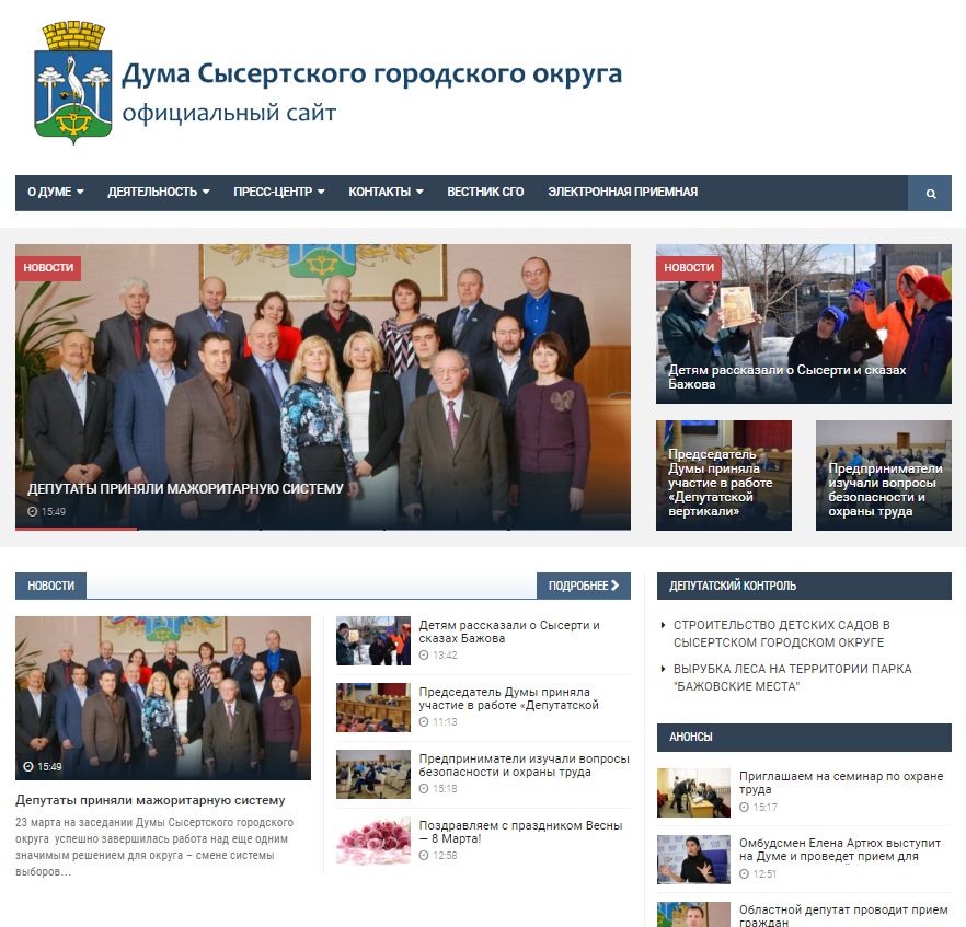 С апреля 2015 года появился сайт думы СГО (dumasysert.ru). Его главная цель – доступное и понятное размещение информации о деятельности думы. Здесь жители могут заранее узнать, о чем будут говорить депутаты на заседании, почитать проекты решений, в пресс-релизах узнать детали. На сайте есть биографии депутатов, телеинтервью с ними, доступен и пополняется архив «Вестника СГО», публикуются отчеты депутатского контроля. За два года сайт посетили 11,5 тысяч человек, количество просмотров составило около 70 тысяч. Работает электронная приемная, через которую к депутатам может обратиться любой житель.